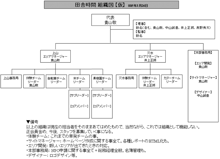 上山事務局と穴水事務局は、貴山・井上が、それぞれ先方に打診。まだNPO申請するわけではないので仮組織ということを理解してもらった上で。